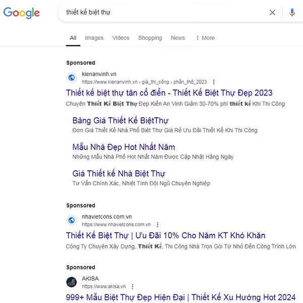 Quảng cáo Google Search Ads hiển thị trên Google Tìm kiếm khi người dùng tìm kiếm bằng cụm từ nằm trong bộ từ khóa quảng cáo đã được chọn sẵn.