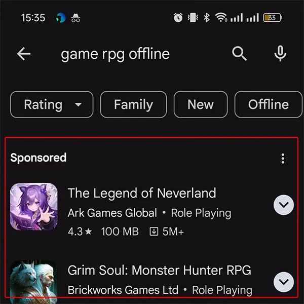 Quảng cáo Google Ads hiển thị trên trang chủ, trang tìm kiếm app và trong trang chi tiết app trên Play Store.